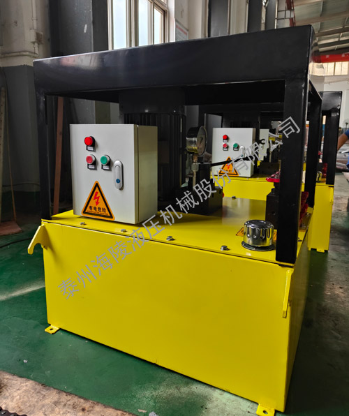 我公司生產(chǎn)的超高壓泵站采用符合液壓系統(tǒng)要求的液壓油作媒介,由電機(jī)經(jīng)泵柱塞泵送出符合要求流量與壓力,供液壓系統(tǒng)使用。