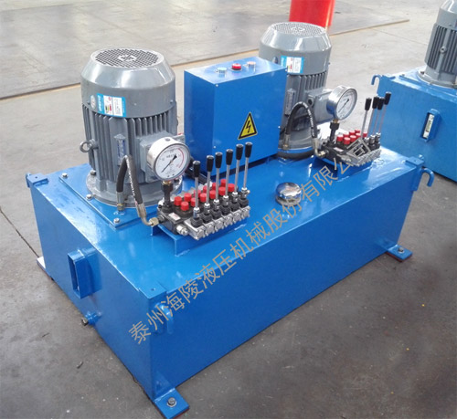 我公司生產(chǎn)的中壓泵站采用符合液壓系統(tǒng)要求的液壓油作介質(zhì),由電機(jī)經(jīng)泵柱塞泵送出符合要求流量與壓力,供液壓系統(tǒng)使用。主要由三相電機(jī)、變量柱塞泵、三聯(lián)多路手動換向閥、內(nèi)置式溢流閥、油箱、等部件組成,具有調(diào)壓、過載保護(hù)等功能,為設(shè)備提供液壓動力源。